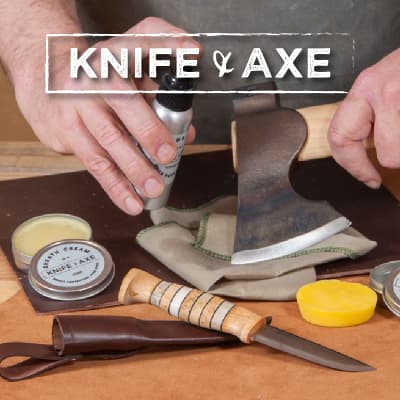 The Blade Oil, Handle Wax and Sheath Cream are all made in Canada while their Field Sharpener and Axe Stone are made in the U.S.A.